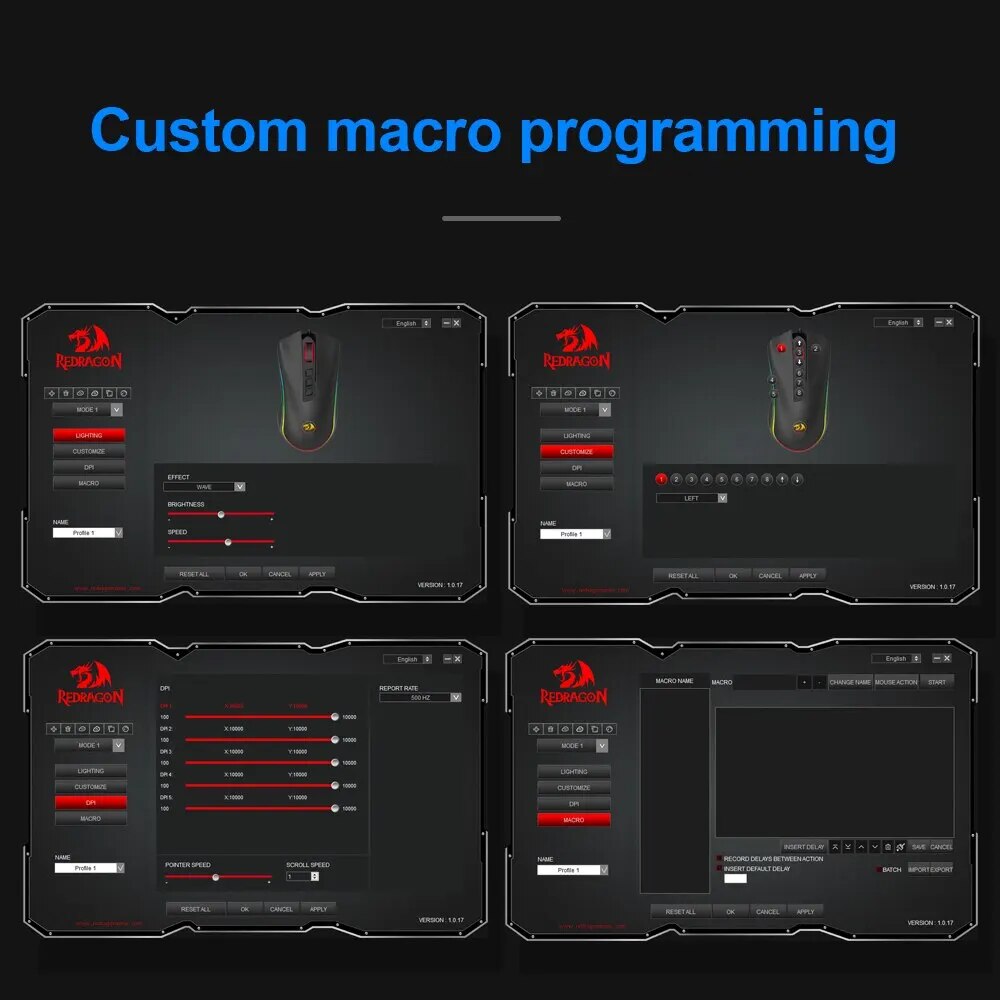 Professional Programming Software – Adopted the latest professional gaming chip AVAGO to capture fast and accurate movement for precise control; 5 adjustable DPI settings-500/1000/2000/3000/5000, quickly adjustable for different gaming scenarios; 5000 FPS, 220 IPS Maximum Tracking Speed, 30G acceleration.