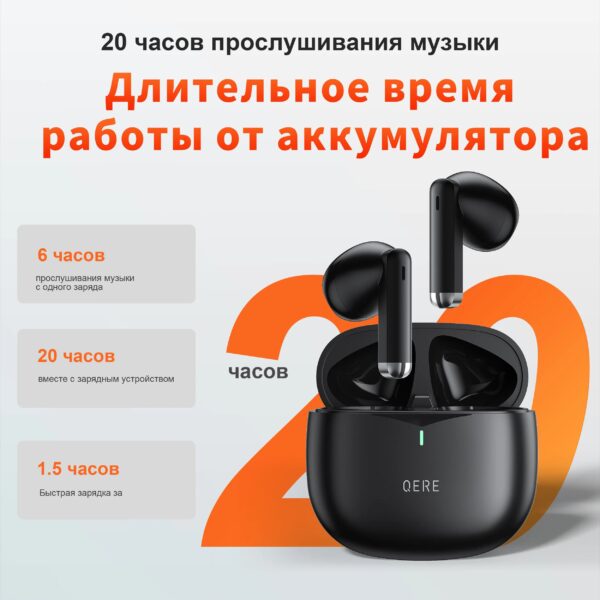 20Hr Playback with 6Hr Battery Life per charge & 20Hr with Charging Case – Quick Charge Technology for Full Battery in 1.5 Hours